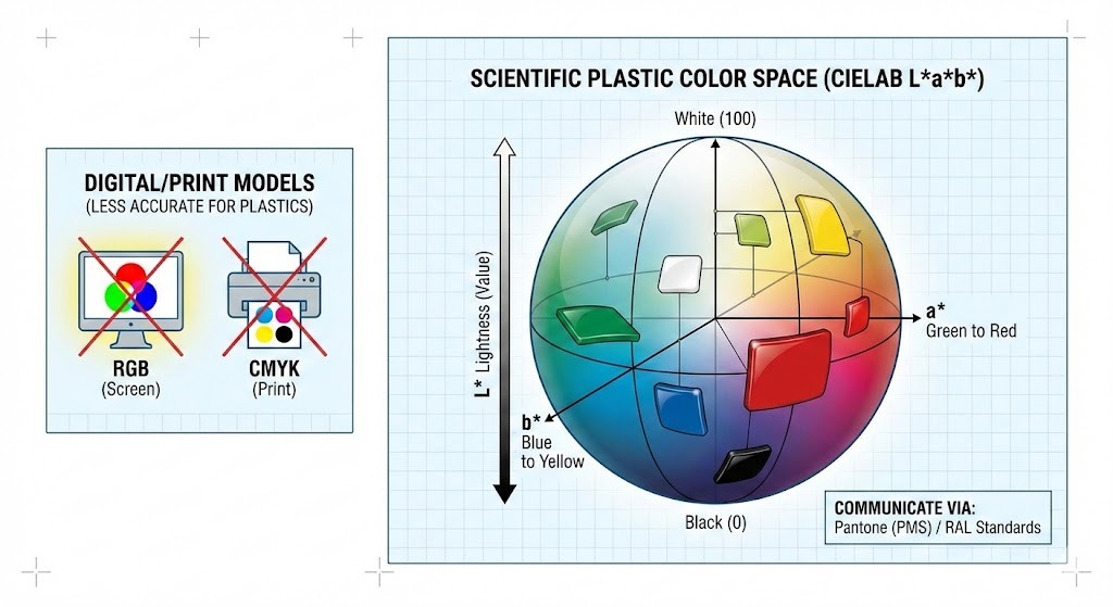 Umtes de mergulhar no maquinário, é fundamental entender como a cor funciona em um meio físico tridimensional como o plástico. Muitos erros de design ocorrem porque as partes interessadas dependem de modelos digitais de cores que não se traduzem bem na fabricação física.