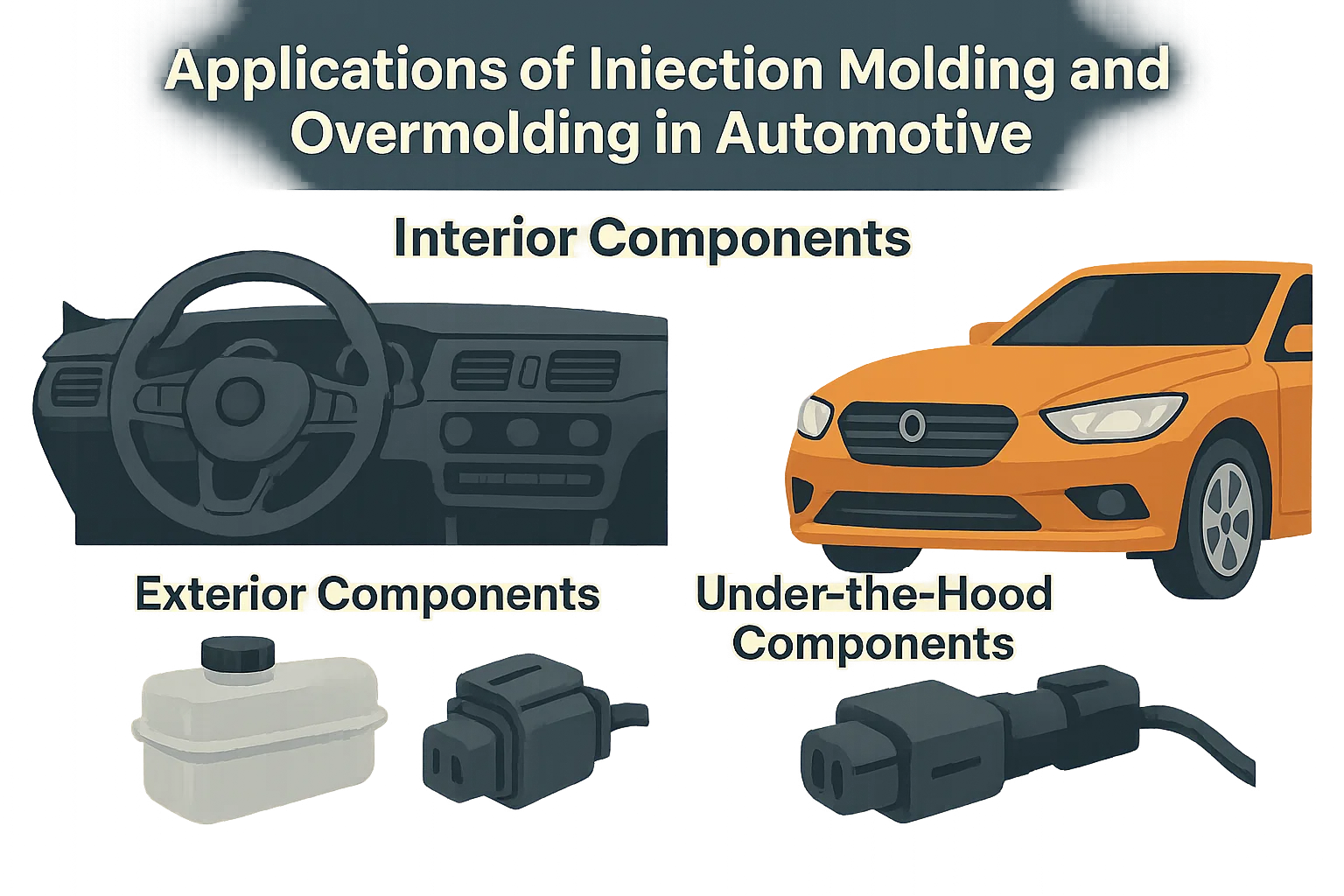 UM moldagem pou injeção e a sobremolência são dois processos fundamentais de fabricação que revolucionaram a indústria automotiva. Essas técnicas são essenciais para a produção de uma ampla gama de componentes, Assim, desde peças internas da cabine a gabinetes embaixo da calma, com alta precisão e eficiência. A capacidade de criar geometrias complexas e integrar várias funções em uma única parte touna esses processos indispensáveis para o design moderno de veículos.