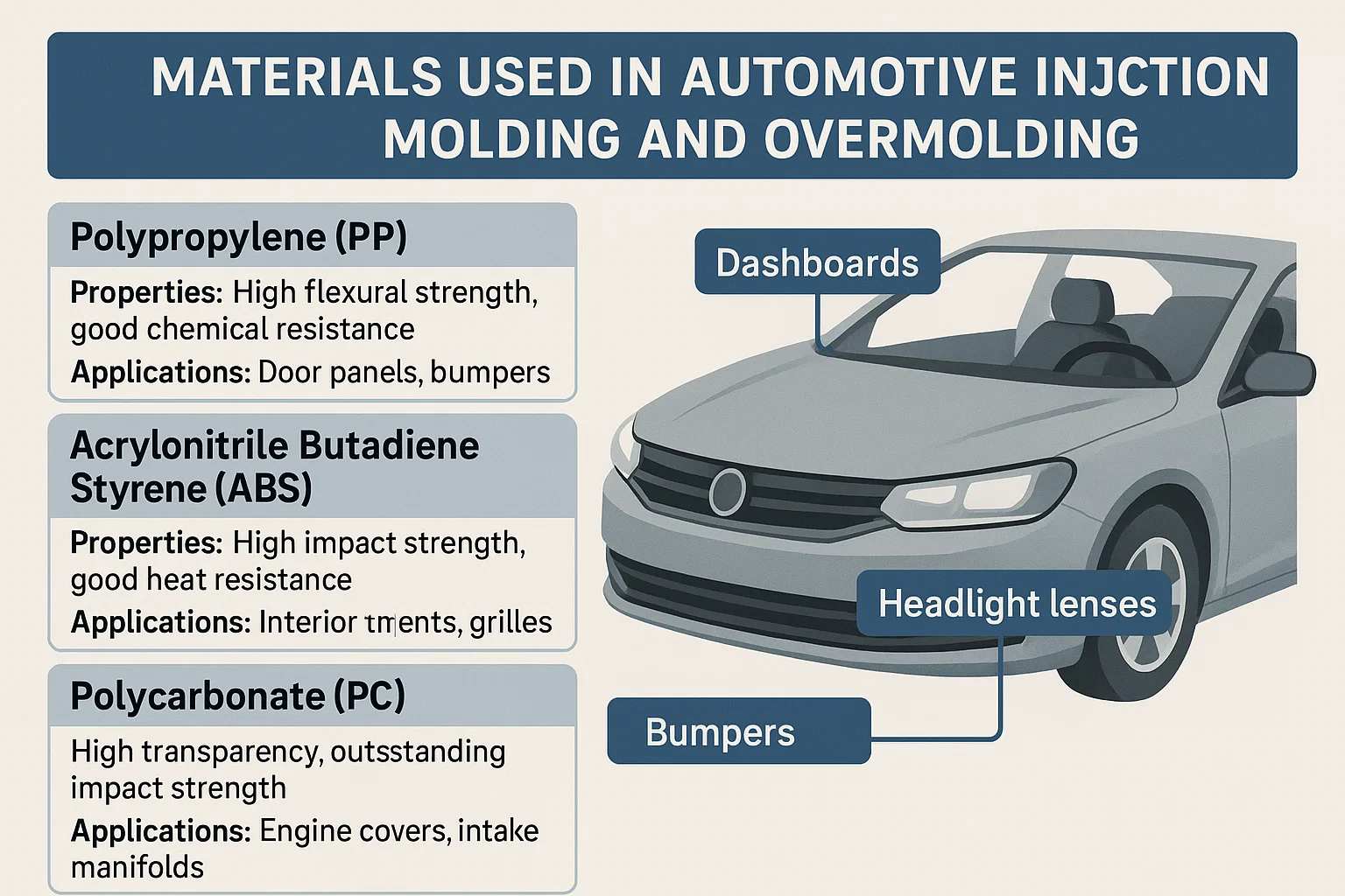 Materiais utilizados em moldagem por injeção automotiva e sobremoldamento